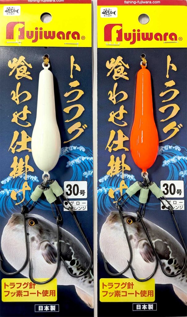 トラフグ喰わせ仕掛け TORAFUGU KUWASE SHIKAKE 商品紹介 ロングタイプのシンカーで落下時にエサが道糸に絡みづらい トラフグ針フッ素コート使用 針は交換可能 カテゴリ 製品種類 仕掛け ブランド FUJIWARA 釣場 船 魚種類 トラフグ 製品仕様 サイズカラー入数 25号 / 30号 / 40号 / 60号蛍光イエロー / 蛍光オレンジ / グロー1